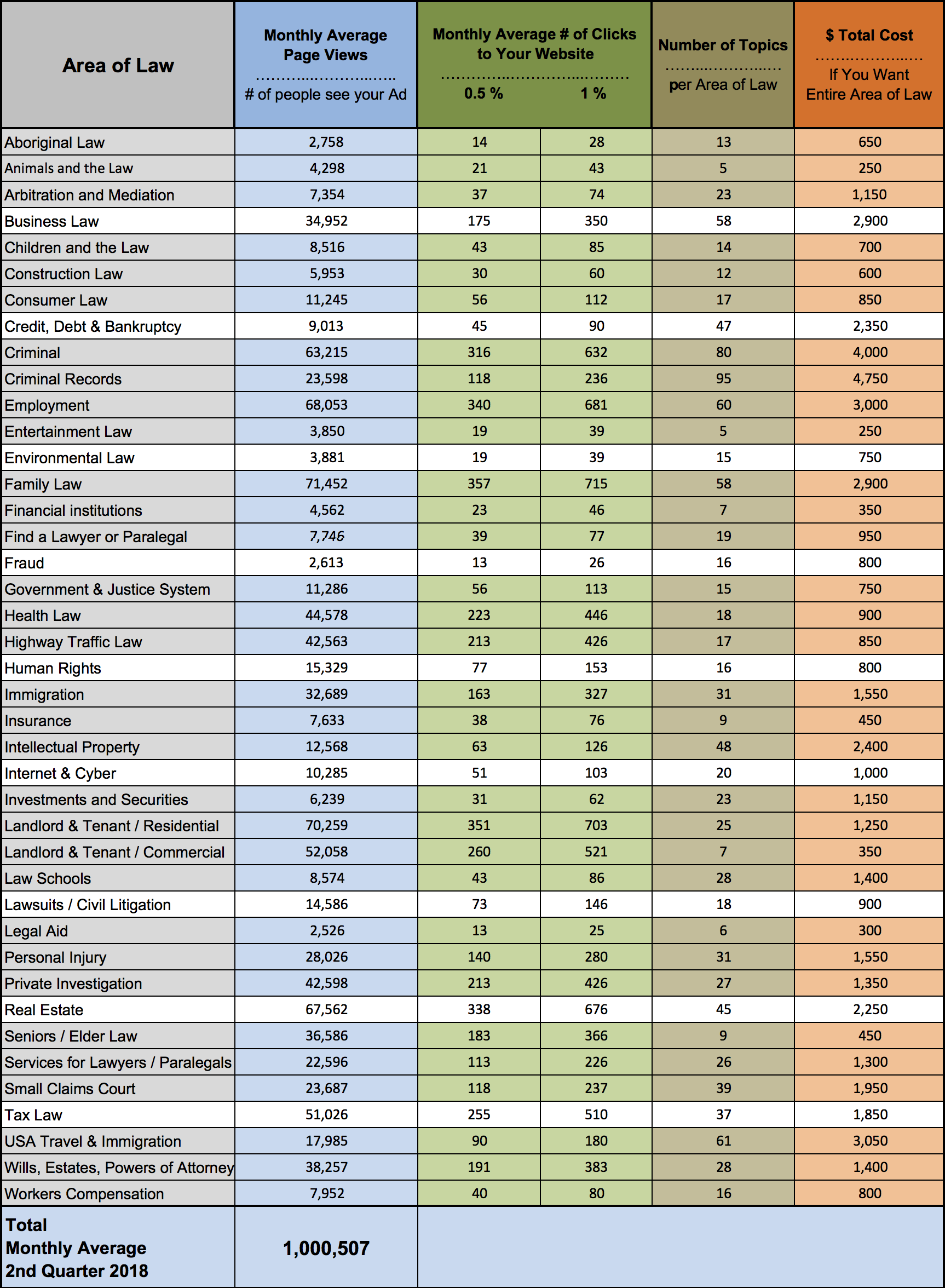 Legal Line has a high Google Authority top ranking of 50 because we had over 10 million ‘organic’ page views last year. Google attributes the same credibility to our advertisers who have a backlink from within our answers. As a result, our advertisers have jumped from as far back as page 8 on a Google search to page ONE. By coming up higher on Google searches organically, you will: (i) get free Google clicks, (ii) be seen as more credible by Google users (as opposed to paid advertisers), and (iii) reduce your Adwords spending.