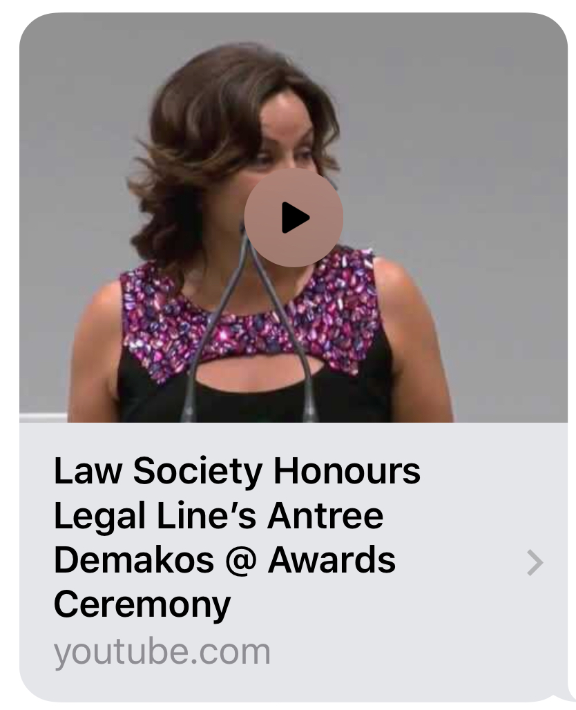Legal Line Founder and COO Antree Demakos will be one of the Law Society of Ontario “Extraordinary Legal Professionals to be Honoured at Annual Awards Ceremony”.