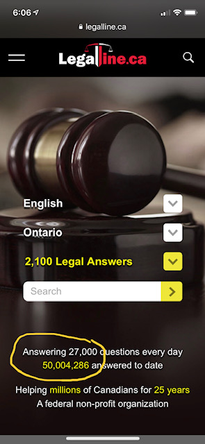 50 millionth hit: November 10, 2019 is the exact day that Legalline.ca crossed this momentous threshold.