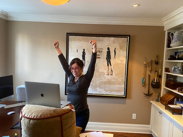Keeping things real with a few group stretches to relax and sharpen everyone in her COVID generation online ZOOM class.