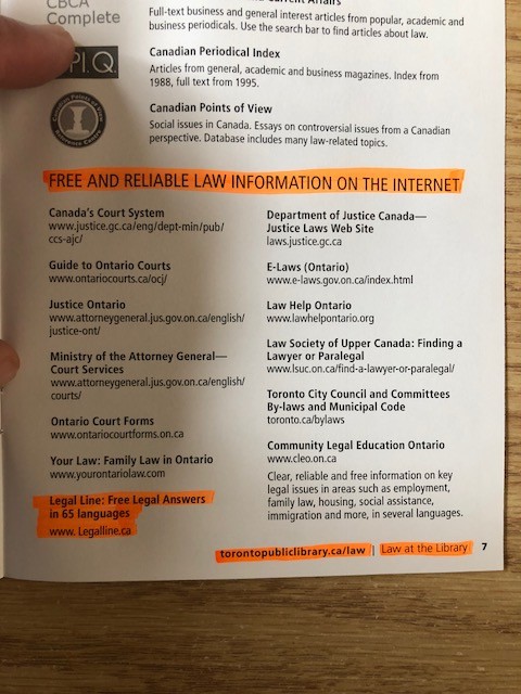 The Toronto Public Library system (including 99 branches) reports that legal resources and seminars are the most popular and well received program it has ever offered, and as such, Legal Line flyers are now available at thousands of libraries across Canada.
