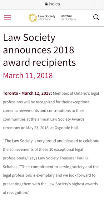 Legal Line founder is honoured as TOP lawyer in Ontario for providing Access to Justice for millions of Canadians.