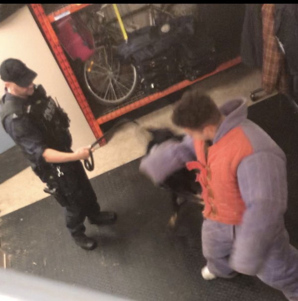 Police dog attacks Andreas’ arm with such intense force that even though the police issued protective body suit, his arm was bruised for a week !